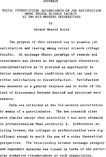 Social psychological determinants of job satisfaction among social science faculty at two Mid-western univerities