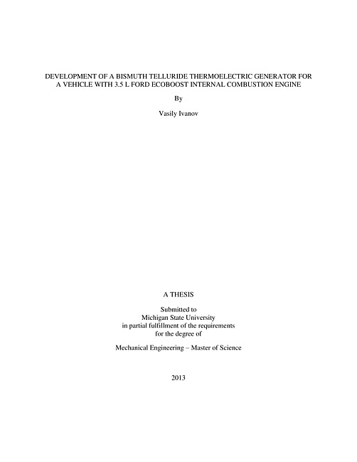 Development of a bismuth telluride thermoelectric generator for a vehicle with 3.5 L Ford Ecoboost internal combustion engine