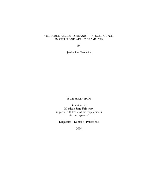 This dissertation presents a series of studies examining the structure and meaning of compounds, such as mouse-trap and mouse-catcher, in child and adult grammars. The first part of this dissertation examines how adults interpret compounds and the second part examines how children acquire the adult compounding system. The goals are (i) to argue that a generative lexical semantics is necessary to understand how speakers use compounds and (ii) to argue that children use the same generative mechanism as adults to build compound interpretations.In the first part of this dissertation two adult studies examine the role of a generative syntax and a generative lexical semantics (Pustejovsky 1995) in the interpretation of compounds. The first study asks adults to interpret novel noun-noun compounds and verbal compounds. The results support the hypothesis that organized lexical information, including natural classes, must be taken into account in addition to syntactic structure to determine the most likely meaning of compounds. The second study asks adults to rate different interpretations of verbal compounds. The results support the hypothesis that the syntax of verbal compounds constrains the relationship between the verb and modifier to a single verb-internal argument interpretation. Taken together, these results support a model where both the syntax and the lexical semantics are active, generative mechanisms.In the second part of this dissertation five child studies test the hypothesis that, given compositionality, children's knowledge of syntax and lexical semantics go hand in hand with their interpretation. Three studies examine children's production and interpretation of noun-noun compounds, with the goal of determining if children use lexical structure in the same way as adults when producing and interpreting compounds. The first noun-noun study is a corpus study. The results support the hypothesis that children and adults produce novel noun-noun compounds according to the natural classes of the constituents in compounds, but not the individual words in compounds. The second noun-noun compound study is an elicited production task. The results provide evidence for children's production of compounds for the same range of meanings as adults, albeit to a lesser degree overall. Finally, the third noun-noun compound study is a forced-choice interpretation task. The results support the hypothesis that children interpret novel compounds according to their knowledge of natural class behavior, rather than individual word behavior. Next, two studies examine children's production and interpretation of verbal compounds. The goal of these studies is to examine whether children's knowledge of verbal compound syntax, as evidenced by their production, makes predictions about children's comprehension of verbal compounds. The first study is an elicited production task. The results provide evidence for the idea that children's non-adult verbal compound forms (catch-mouse and catcher-mouse but not mouse-catch for mouse-catcher) reflect the steps in the adult derivation of verbal compounds. The second study is a forced-choice interpretation task. From the results we observe that children constrain their interpretation of verbal compounds based on their knowledge of the verbal compound structure.In summary, the results of the child studies provide evidence that children use the same system as adults to interpret compounds, and any deviations from adult-like interpretations can be explained by non-adult syntactic or lexical semantic knowledge.