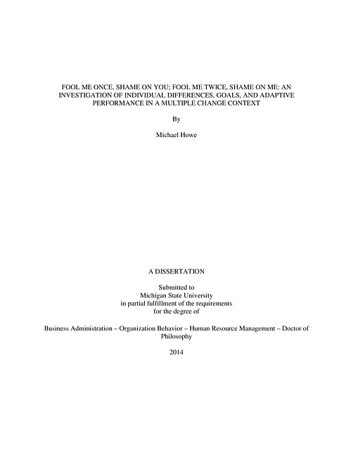 Fool me once, shame on you; fool me twice, shame on me : an investigation of individual differences, goals, and adaptive performance in a multiple change context