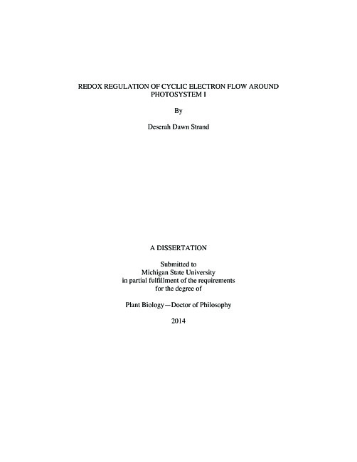 The proton coupled electron transfer of the light reactions of photosynthesis supply ATP and reducing power to metabolic processes within the chloroplast and, ultimately, the organism. The textbook pathway of electron transfer or `Z-scheme' of photosynthesis supplies a fixed ratio of ATP and reducing power (i.e. reduced ferredoxin and NAD(P)H), however, the downstream metabolic demands require a highly dynamic ratio. This poses a problem when downstream metabolic demands lead to a deficit of ATP, a buildup of reducing equivalents may occur in the stroma, which may then lead to the buildup of reactive oxygen species (ROS). To balance the output of the light reactions, the chloroplast employs several mechanisms to either shunt electrons out of the system, or by redirecting electrons away from downstream metabolism and back into the plastoquinone pool to generate additional ATP in a process termed cyclic electron flow around photosystem I (CEF). CEF has been proposed to be catalyzed by multiple pathways. In plants, this includes the antimycin A sensitive ferredoxin quinone reductase (FQR) and the respiratory Complex I analog, the NADPH dehydrogenase complex (NDH). We found these pathways are differentially regulated by redox status, with the FQR more active in a reducing environment (Em = -306 mV), while the NDH is activated in response to ROS. We further found that the kinetics of activation for the two pathways were different, with the FQR rapidly activated (seconds to minutes) and the NDH activated more slowly (minutes). Additionally, we have evidence that the NDH is a proton pumping plastoquinone reductase. This observation indicates the two pathways contribute different levels of pmf to offset an ATP deficit. We propose CEF pathways are differentially regulated in response to chloroplast redox state. The FQR is rapidly activated when reducing equivalents in the stroma accumulate in response to a short-term or rapidly fluctuating ATP deficit. When the FQR fails to restore homeostasis and the ATP deficit leads to ROS formation, the NDH complex is activated as a more robust mechanism of pmf generation via CEF.