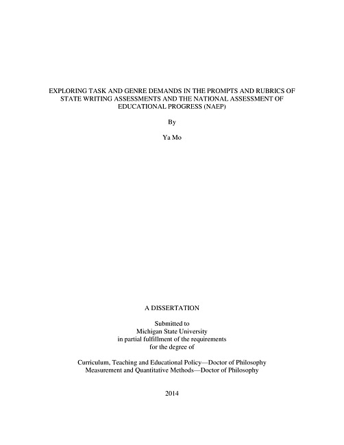 Exploring task and genre demands in the prompts and rubrics of state writing assessments and the National Assessment of Educational Progress (NAEP)
