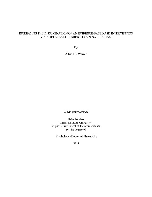 Increasing the dissemination of an evidence-based ASD intervention via a telehealth parent training program