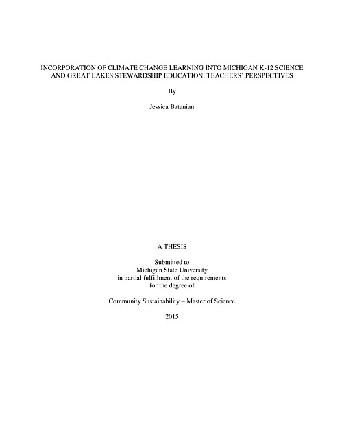 Incorporation of climate change learning into Michigan K-12 science and Great Lakes stewardship education : teachers' perspectives