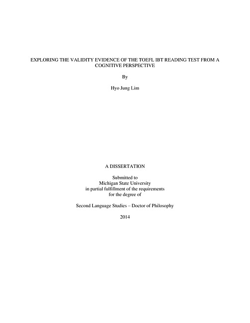 Exploring the validity evidence of the TOEFL iBT reading test from a cognitive perspective