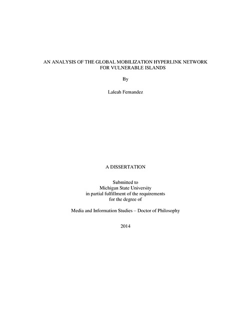 An analysis of the global mobilization hyperlink network for vulnerable islands