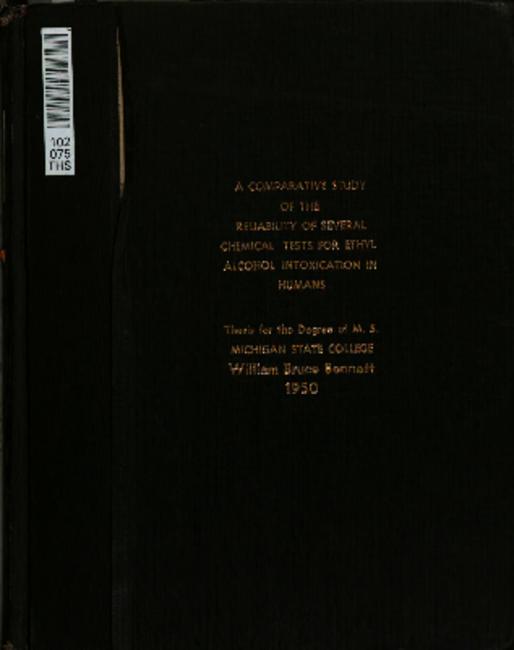 A comparative study of the reliability of several chemical tests for ethyl alcohol intoxication in humans