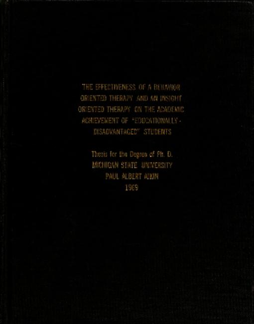 The effectiveness of a behavior oriented therapy and an insight oriented therapy on the academic achievement of "educationally disadvantaged" students