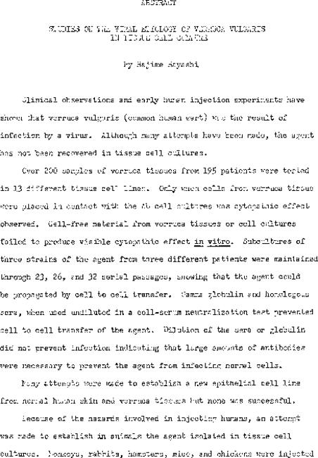 Studies on the viral etiology of verruca vulgaris in tussue cell culture