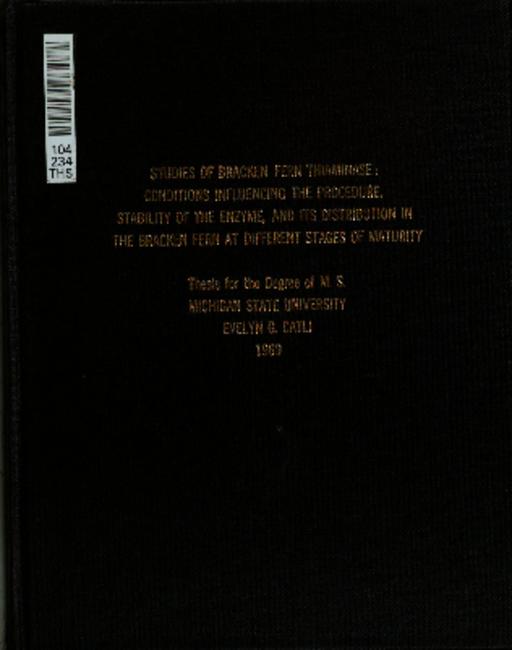 Studies of bracken fern thiaminase : conditions influencing the procedure, stability of the enzyme, and its distribution in the bracken fern at different stages of maturity
