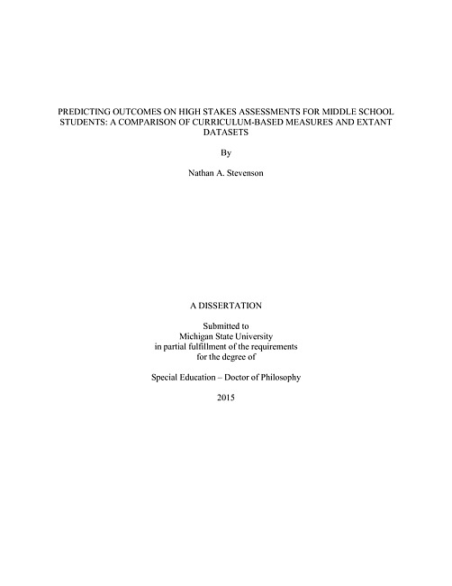 Predicting outcomes on high stakes assessments for middle school students : a comparison of curriculum-based measures and extant datasets
