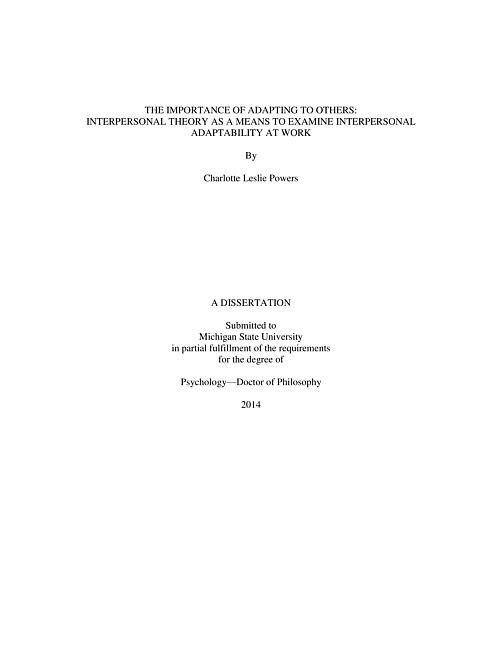 The importance of adapting to others : interpersonal theory as a means to examine interpersonal adaptability at work