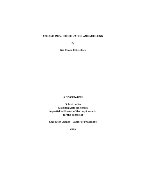 "The objective of this thesis is to prioritize cybersickness human factors and develop models to predict their effects." -- Abstract.