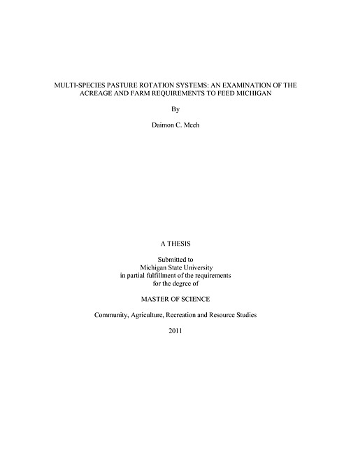 Multi-species pasture rotation systems : an examination of the acreage and farm requirements to feed Michigan