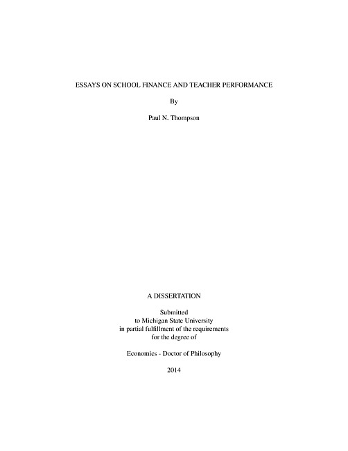 Essays on school finance and teacher performance
