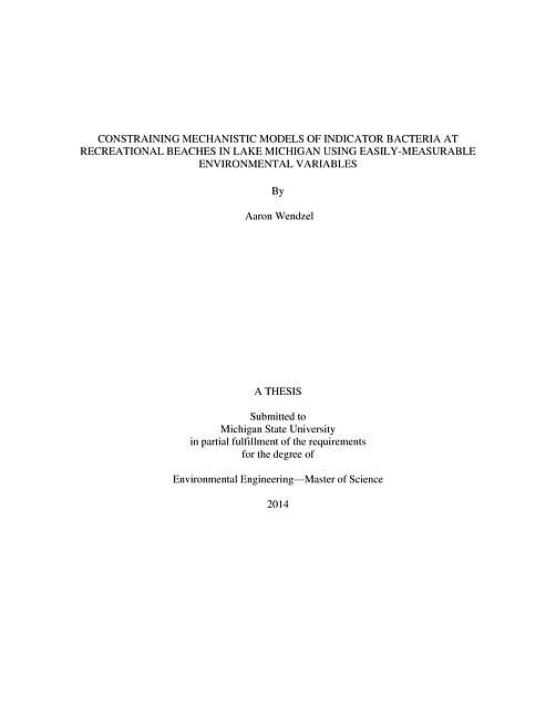 Constraining mechanistic models of indicator bacteria at recreational beaches in Lake Michigan using easily-measurable environmental variables