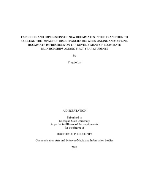 Facebook and impressions of new roommates in the transition to college : the impact of discrepancies between online and offline roommate impressions on the development of roommate relationships among first year students
