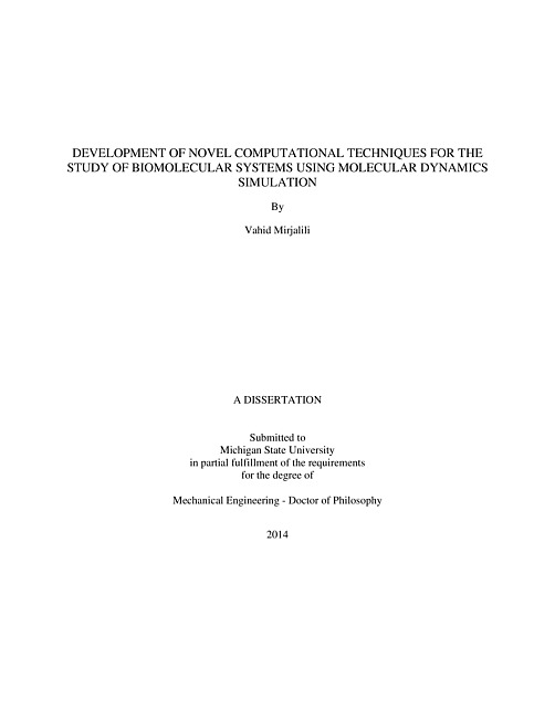 Development of novel computational techniques for the study of biomolecular systems using molecular dynamics simulation