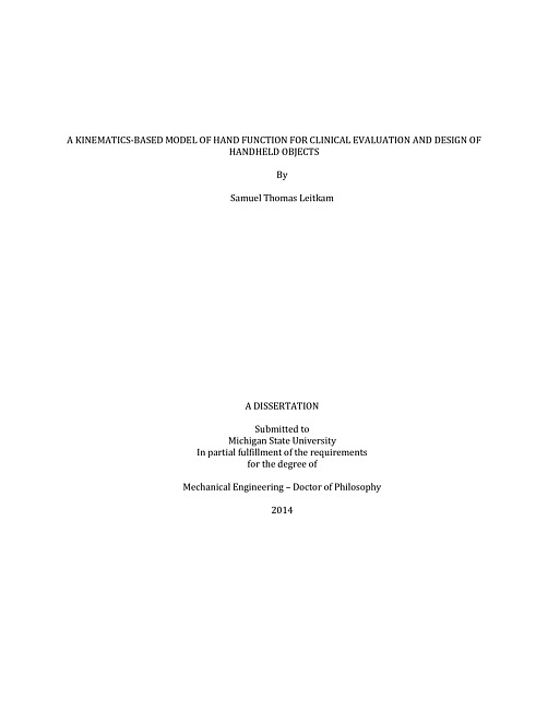A kinematics-based model of hand function for clinical evaluation and design of handheld objects