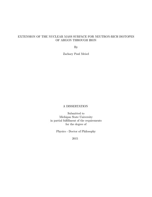 Nuclear mass measurement has maintained an important position in the field of nuclear physics for a little over a century. Nuclear masses provide key evidence of the structural transformation of nuclei away from the valley of beta-stability and are essential input for many simulations of extreme astrophysical environments. However, obtaining these masses is often a challenging endeavor due to the low production cross sections and short half-lives of the exotic nuclei which are of particular interest. To this end, the time-of-flight mass measurement technique has been developed to obtain the masses of several nuclei at once to precisions of 1 part in 10^5 with virtually no half-life limitation. This dissertation contains a description of the experiment, analysis, and results of the second implementation of the time-of-flight nuclear mass measurement technique at the National Superconducting Cyclotron Laboratory. 18 masses were obtained for neutron-rich isotopes of argon through iron, where the masses of 48Ar, 49Ar, 56Sc, 57Sc, 64Cr, 67Mn, and 69Fe were measured for the first time. These newly obtained masses were applied to outstanding problems in nuclear structure and nuclear astrophysics, resulting in significant scientific advances. The measurement results for 48Ar and 49Ar, which were found to have atomic mass excesses of -22.28(31) MeV and -17.8(1.1) MeV, respectively, provide strong evidence for the closed shell nature of neutron number N = 28 in argon. It follows that argon is therefore the lowest even-Z element exhibiting the N = 28 closed shell. The masses of 64Cr, 67Mn, and 69Fe, which were found to have atomic mass excesses of -33.48(44) MeV, -34.09(62) MeV, and -39.35(60) MeV, respectively, show signs of nuclear deformation occurring around the N = 40 subshell. In addition, we found 64Cr is substantially less bound than predicted by global mass models that are commonly used in nuclear astrophysics simulations, resulting in a significant reduction in the predicted strength and depth of electron capture heating in the accreted neutron star crust due to the rather abundant A = 64 mass-chain. The reported value for the atomic mass excess of 56Sc, -24.85(59)(+0,-54) MeV, which contains an asymmetric systematic uncertainty due to potential isomeric contamination, results in a smaller than expected odd-even mass staggering in the A = 56 mass chain. Depending on the choice of theoretical models for electron capture transition strengths and energies, this could lead to strong Urca cooling in accreted neutron star crusts, due to the large amount of A = 56 material predicted to be present on the surface of accreted neutron stars.