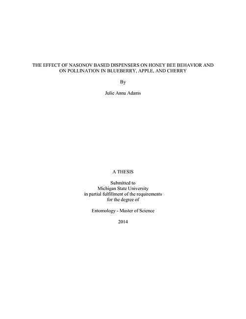 The effect of Nasonov based dispensers on honey bee behavior and on pollination in blueberry, apple, and cherry