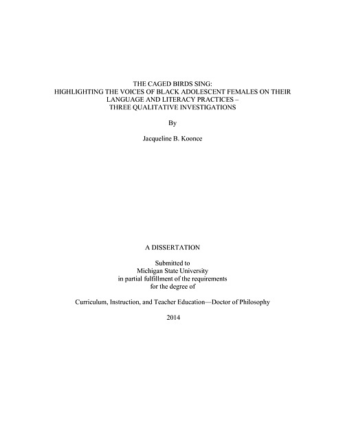 The caged birds sing : highlighting the voices of Black adolescent females on their language and literacy practices -- three qualitative investigations