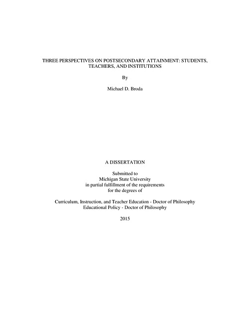 Three perspectives on postsecondary attainment : students, teachers, and institutions