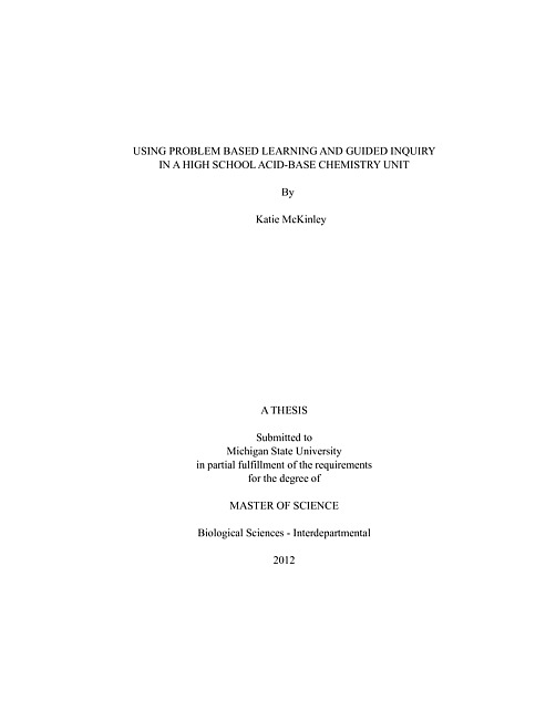 Using problem based learning and guided inquiry in a high school acid-base chemistry unit
