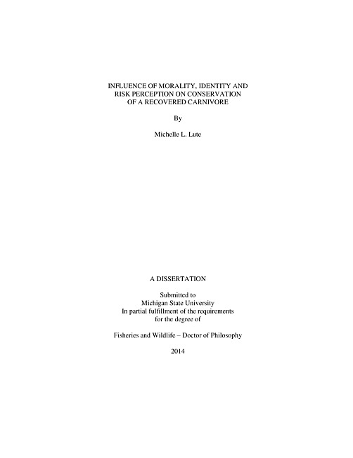 "This dissertation sought to advance knowledge about the social psychology of human-nature relationships using Michigan wolf management as a case study." -- Abstract.