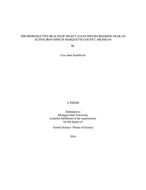 The reproductive health of select avian species residing near an active iron mine in Marquette County, Michigan