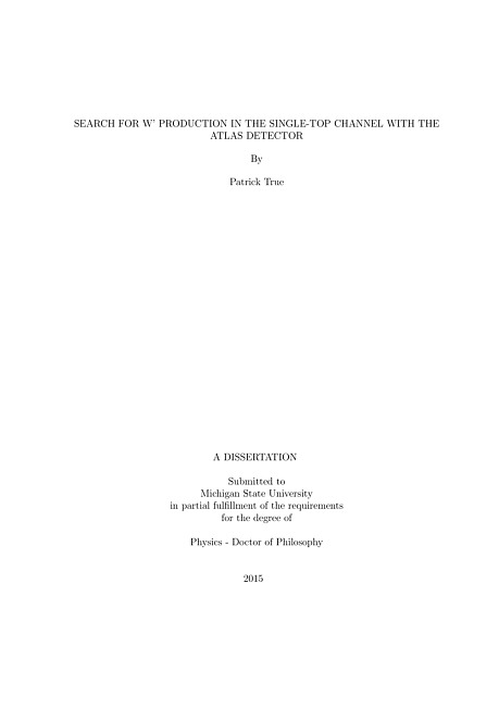 "This dissertation describes a search for a new particle using the largest detector in the world at the highest energy particle collider ever built and is part of an international research program in collaboration with a multinational research group, specifically the search for W′ → t⁻b using the ATLAS detector at CERN." -- Introduction, page 1.