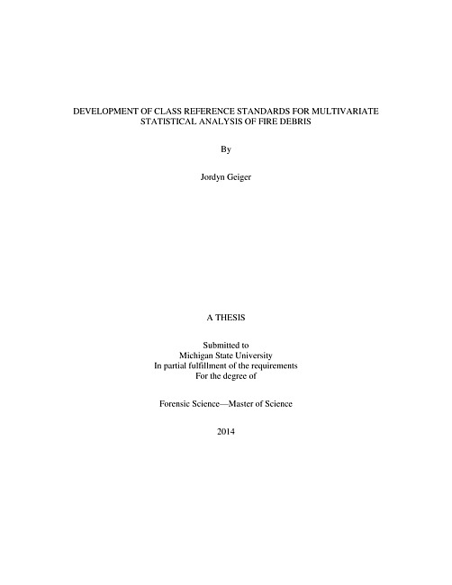 Research in statistical analysis of fire debris evidence has grown increasingly as a result of the 2009 National Academy of Sciences report. Multivariate statistical procedures such as principal components analysis (PCA) have previously been investigated as a means for associating simulated fire debris samples to the corresponding ignitable liquid standards. This research investigated the development of class reference standards aimed to standardize a multivariate statistical approach for the analysis of fire debris. Three standards representative of ASTM chemical classes were developed in this research to investigate the utility of an alternative standard data set. Standards were developed based on major characteristic compounds of each class. Commercially available ignitable liquid standards, developed class reference standards, and simulated fire debris samples were analyzed by gas chromatography-mass spectrometry. The utility of developed reference standards was investigated using PCA, hierarchical cluster analysis (HCA), and k-Nearest neighbors (k-NN) as a means of generating a more standardized approach. Commercially available standards were also used to investigate the impact of data set selection for successful association and classification of simulated fire debris samples to the corresponding standard and address current limitations of commercial ignitable liquid standards. Association and classification of class reference standards was successful and showed some potential as an alternative to commercially available ignitable liquid standards.