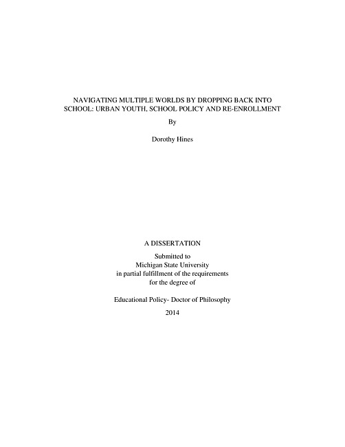 Navigating multiple worlds by dropping back into school : urban youth, school policy and re-enrollment