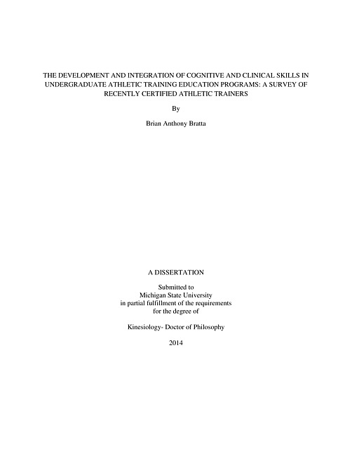 The development and integration of cognitive and clinical skills in undergraduate athletic training education programs : a survey of recently certified athletic trainers