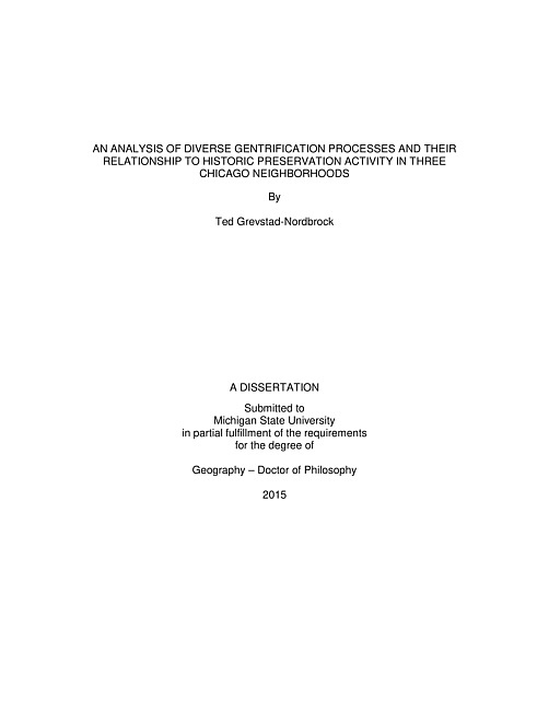 An analysis of diverse gentrification processes and their relationship to historic preservation activity in three Chicago neighborhoods
