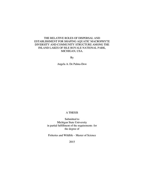 The relative roles of dispersal and establishment for shaping aquatic macrophyte diversity and community structure among the inland lakes of Isle Royale National Park, Michigan, USA