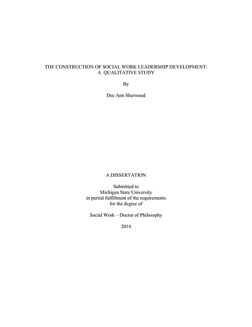 "The purpose of this study was to examine how social work leaders define the construct of leadership within the profession. Specifically, this qualitative study utilized a purposive sampling technique to identify 18 master's-level social work leaders who were employed in the non-profit, governmental agency, and educational settings."--From abstract.