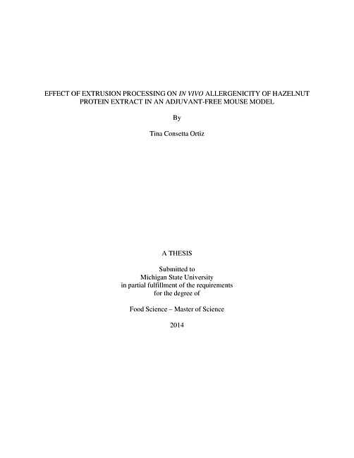 Effect of extrusion processing on in vivo allergenicity of hazelnut protein extract in an adjuvant-free mouse model