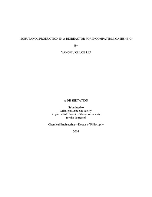 Electrofuels are carbon-neutral, renewable transportation fuels generated using non-photosynthetic CO2 fixation. Biological conversion of H2, CO2 and O2 into alcohols is emerging as a promising strategy for producing electrofuels while reducing greenhouse gas emission. However, development of this process presents significant bioreactor-design challenges. First, these fermentations have unusually high demands for gas mass transfer. Second, the need to simultaneously deliver H2 and O2 creates safety issues, because these gases are incompatible, forming a flammable mixture over the range of 4 to 94% H2. Third, alcohols are typically inhibitory to the microbial biocatalysts, making their in situ removal desirable for continuous bioreactor operation. This dissertation describes development of a novel Bioreactor for Incompatible Gases (BIG) to address these challenges. The BIG features a hollow fiber configuration, in which the microbial biocatalysts are immobilized in the porous fiber walls. A liquid phase containing microbubbles of one gaseous reactant is pumped through the hollow fibers, and a gas phase containing another gaseous reactant(s) incompatible with the first is maintained outside the fibers. In this way, rapid mass transfer to the immobilized cells of both gaseous reactants is achieved without creating hazardous gas mixtures. In situ product removal can be achieved through the liquid stream (for nonvolatile products) and/or the gas stream (for volatile products). A prototype bench-scale BIG was designed, fabricated, and integrated with an Opto22-based control system that monitored and controlled the composition of the gas phase, dissolved oxygen concentration in the liquid phase, and temperature. The control system was programmed to make intelligent operational decisions in response to process contingencies. The BIG system was inoculated with an isobutanol (IBT)-producing strain of Ralstonia eutropha and operated stably for up to 19 days, during which continuous IBT production from H2, CO2 and O2 was achieved for the first time. A dynamic mathematical model was developed to describe the interplay of multispecies and multidirectional gas mass transfer, along with complex cellular kinetics involving mixed-gas substrates. The simulation results were used to interpret experimental findings and simulate BIG performance under a range of operating conditions. The experimental and modeling results established the unexpected finding that R. eutropha cells both produced and consumed IBT, depending on the local H2 concentration. The BIG prototype reactor and associated mathematical models are generic and could be used for a variety of biofuels based on incompatible gases.