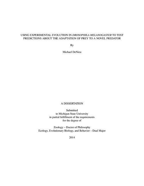 Using experimental evolution in Drosophila melanogaster to test predictions about the adaptation of prey to a novel predator