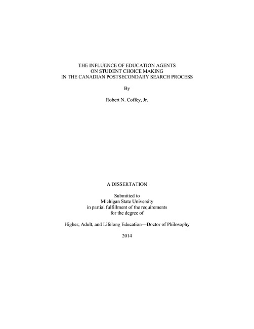 The influence of education agents on student choice making in the Canadian postsecondary search process
