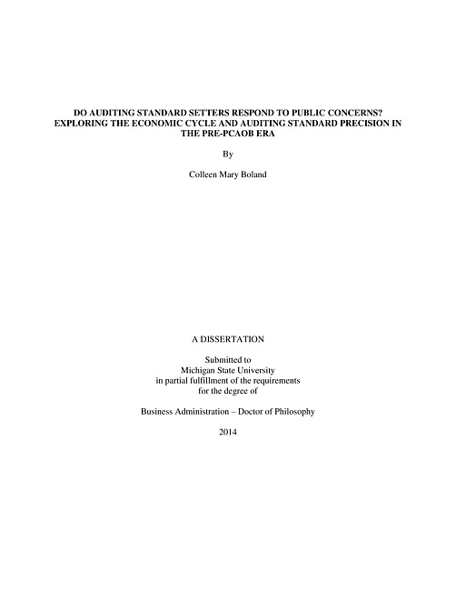 Have private auditing standard setters been responsive to constituent concerns? I explore the frequency of auditing standard issuance and the relative precision of auditing standards from 1939 through 2002, before the creation of the Public Company Accounting Oversight Board in 2002. My findings suggest that private standard setters have responded to a changing constituent base, becoming more responsive over time to investor concerns. Auditing standard setters increase the number of standards issued when investors are most at risk of loss, that is, during economic contractions. In addition to increasing the number of auditing standards issued, auditing standards may have precise features that make it easier to document compliance with the standard. However, when I control for number of standards issued, I do not find evidence of a relationship between standard precision and economic contractions. In addition, I find a negative association between precision and regulatory enforcement actions. These results indicate that enforcement is an important part of auditing standard setting and provide insight into an auditor's preferences for precise standards. These findings should be of interest to regulators who create and enforce auditing standards, as well as preparers, auditors, and other stakeholders impacted by auditing standards.