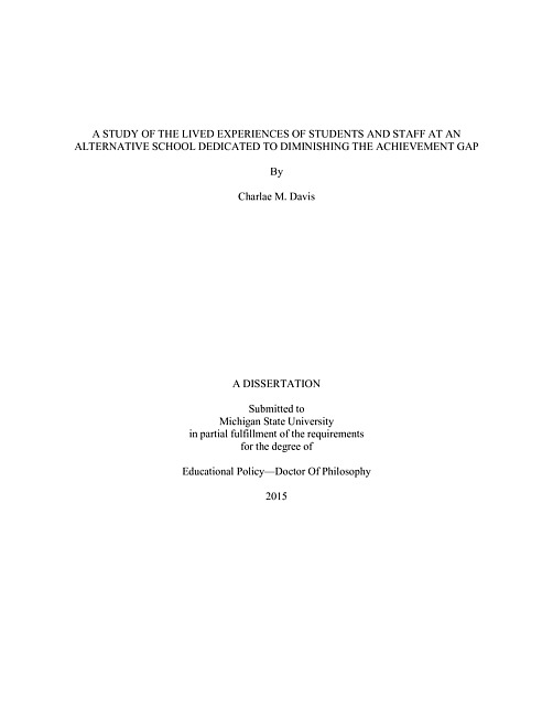A study of the lived experiences of students and staff at an alternative school dedicated to diminishing the achievement gap