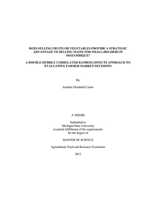 Does selling fruits or vegetables provide a strategic advantage to selling maize for small-holders in Mozambique? : A double-hurdle correlated random effects approach to evaluating farmer market decisions