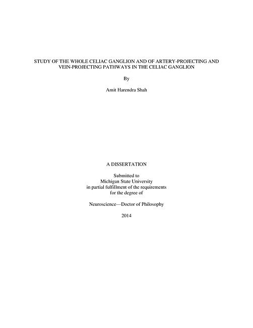 Study of the whole celiac ganglion and of artery-projecting and vein-projecting pathways in the celiac ganglion
