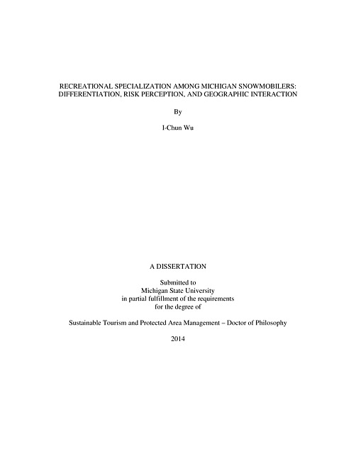 Recreational specialization among Michigan snowmobilers : differentiation, risk perception, and geographic interaction