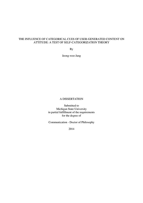 The influence of categorical cues of user-generated content on attitude : a test of self-categorization theory