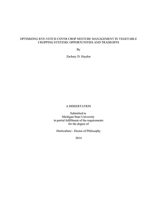 Optimizing rye-vetch cover crop mixture management in vegetable cropping systems : opportunities and tradeoffs