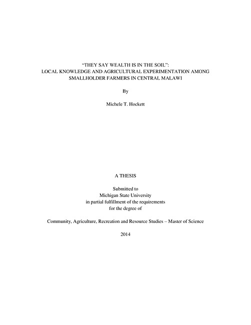"They say wealth is in the soil" : local knowledge and agricultural experimentation among smallholder farmers in central Malawi