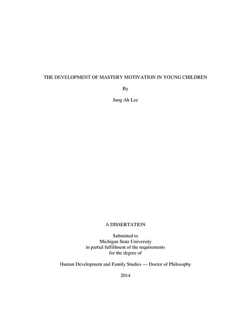 This dissertation presents two studies exploring the development of mastery motivation in the child's first six years of life. Study 1 examines potential sources of variation in children's levels of mastery motivation in the first three years. Study 2 focused on the role of mastery motivation in children's subsequent development, especially executive function skills in the first grade. Study 1 revealed that early maternal depressive symptoms affected child's later mastery motivation and related domains including self-regulation and general cognitive skills. However, direct negative effect of early maternal depressive symptoms on children's later mastery motivation was not significant when considering maternal parenting at 24 months. In particular, maternal sensitivity mediated the effects of early maternal depressive symptoms on child's later mastery motivation. The results of chapter 2 also showed that boys were more vulnerable to the effects of maternal depression. Boys whose mothers had more early depressive symptoms displayed poor general cognitive skills at 36 months. However, boys' mastery motivation and self-regulation were not predicted by early maternal depressive symptoms directly but that was mediated by maternal sensitivity. In chapter 3, mastery motivation played the unique role in the development of executive function skills. Children's mastery motivation at 54 months predicted the development of a set of executive function skills including short- and long-term memory abilities and problem-solving skills in the first grade. However, mastery motivation did not mediate the effects of children's early emotional regulation abilities and maternal sensitivity on later executive function skills. Instead, mastery motivation predicted three of the executive function skills, while emotion regulation predicted another one. This finding confirmed that mastery motivation and emotional regulation are separate constructs, each with a unique role in the development of executive function skills.This dissertation extends our current knowledge about children's mastery motivation. Mastery motivation is influenced by positive maternal behaviors rather than negative behaviors and there are no gender differences in the effects of early maternal depression on later mastery motivation. In addition, mastery motivation improves children's later executive function skills and plays a different role from emotion regulation ability in fostering of children's executive function skills. It implies that mastery motivation is a separate and unique construct. These two studies contribute to understanding more clearly the relations between mastery motivation and maternal behavior and the mechanism by which children's mastery motivation affects their cognitive outcomes.